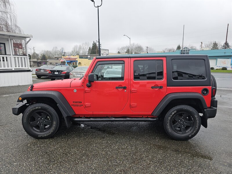 2016 Jeep Wrangler Unlimited Sport — 3.6L V6 (285 hp / 260 lb-ft). This four-door Unlimited model combines true off-road capability with everyday usability. Included with this vehicle are the Black 3-Piece Hard Top for secure, weatherproof coverage and removable open-air flexibility, plus comfortable cloth seating.